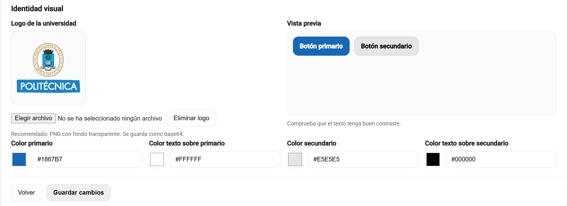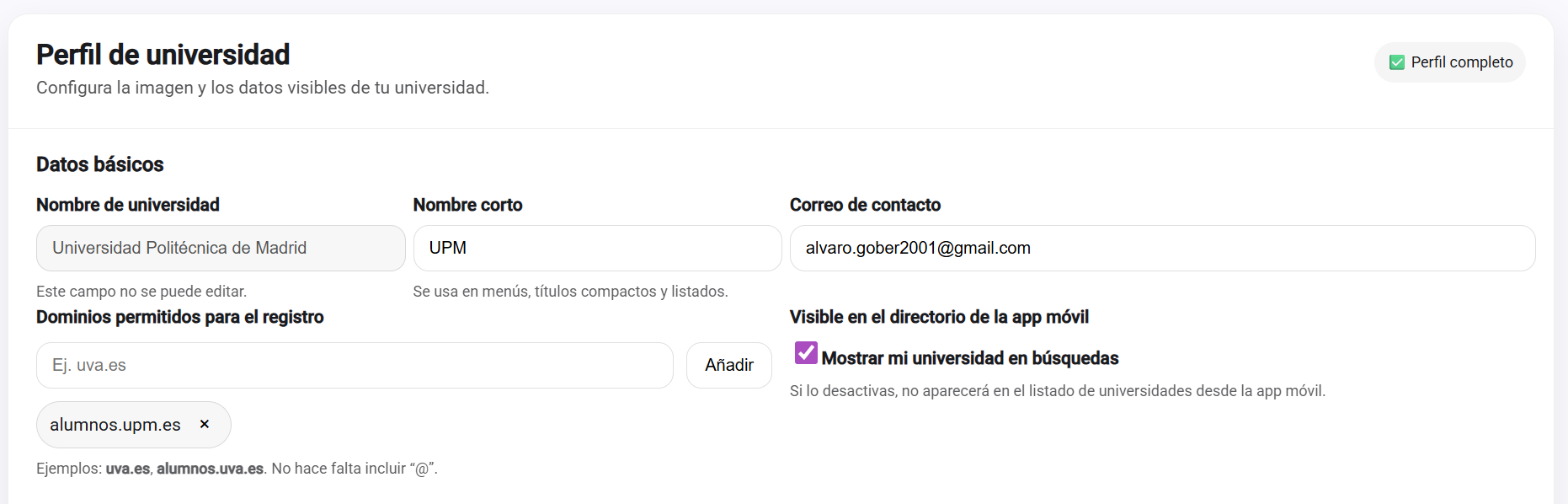 Vista de perfil de usuario (sólo para ADMIN_UNIVERSIDAD)
