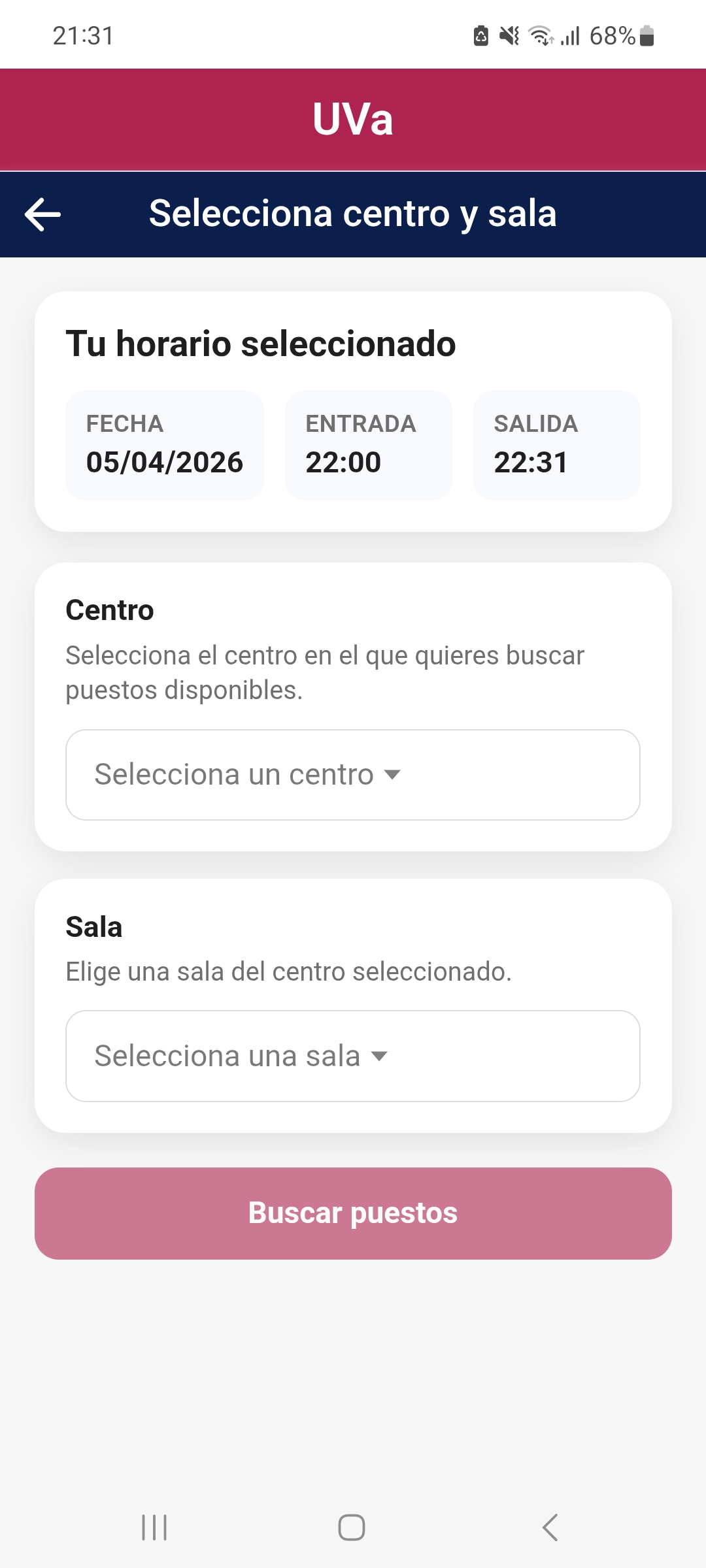[APP] Pantalla APP para seleccionar centro